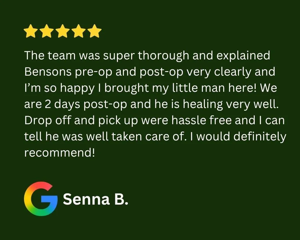 As with any surgery, there are minimal risks such as reactions to anesthesia or post-operative infection. However, the benefits far outweigh the risks for most pets. We take every precaution to minimize any risks during and after the procedure.